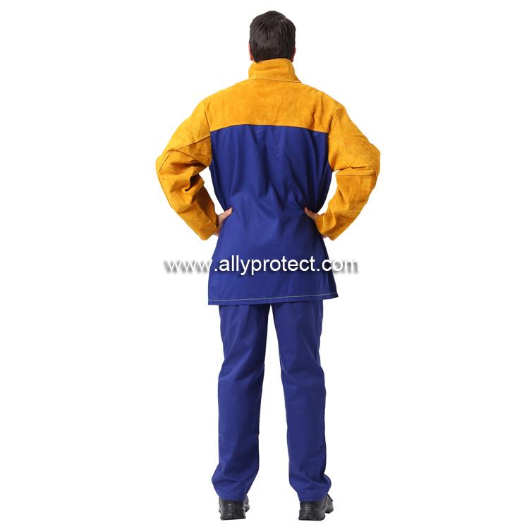 • 產(chǎn)品描述: [ AP ]前幅和衣袖采用金黃色牛二層皮,后幅采用藍(lán)色防護(hù)阻燃布,專為焊工在炎熱環(huán)境下工作而設(shè)計(jì)。
