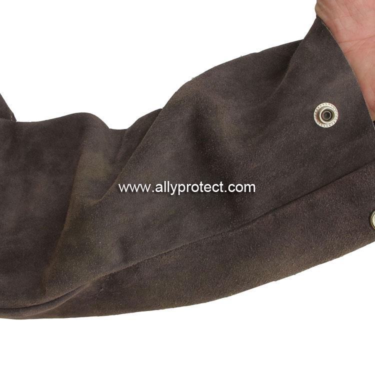 袖由抗火隔熱的牛二層皮制成,衣身由水洗防火阻燃布制成,安全舒涼;