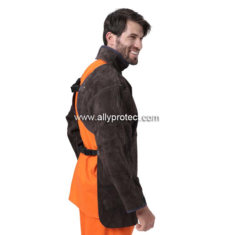 - 產(chǎn)品描述: [ AP ]炭啡色牛二層芯皮全皮護胸立領(lǐng)長袖圍裙,適于在炎熱氣溫或室內(nèi)焊接使用,背部透氣,不會感覺太炎熱。